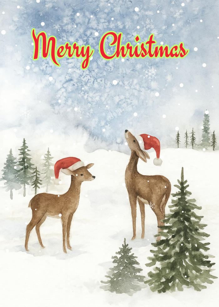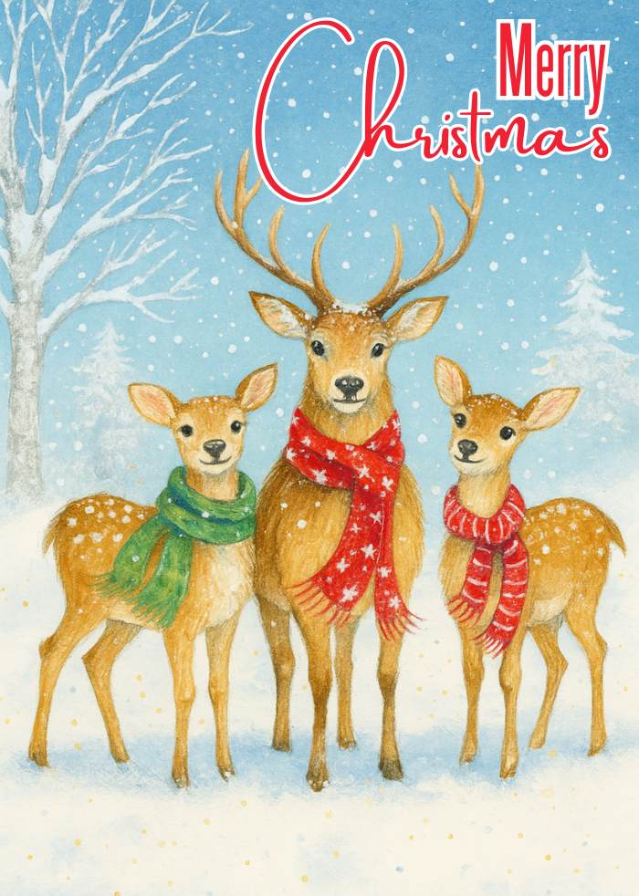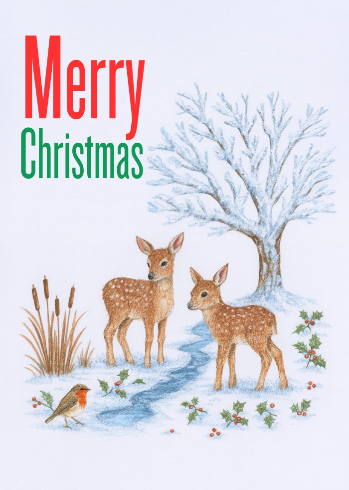 Deer owe their popularity on Christmas cards to their close cousin, the Reindeer, and always add a touch of nature to festive designs.