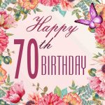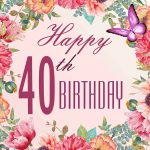 50th birthday ecard, flower decorated, purple butterfly and pink background.