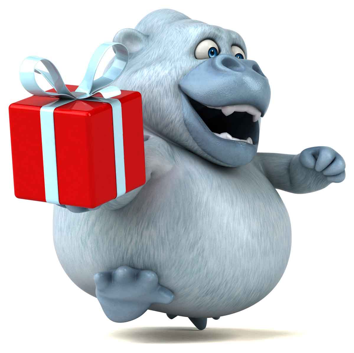 Birthday Ecard Cartoon of a Gorilla with Birthday Present