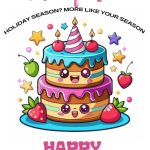 December birthday digital card, cute birthday ecard, festive birthday digital greeting, holiday season birthday card, kawaii cake birthday design