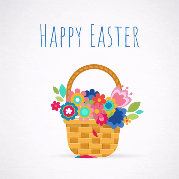 A lovely animated charity Easter ecard. A basket full of colourful spring flowers, with petals from the flowers dropping from the basket.