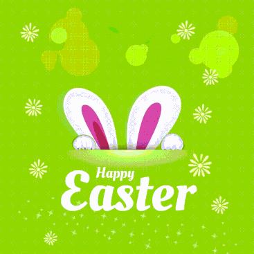 Happy Easter eCard of an animated easter bunny jumping out of a hat