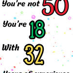 Make them laugh with a funny 50th birthday eCard: “You’re not 50, you’re 18 with 32 years of experience!” Perfect for humor lovers.