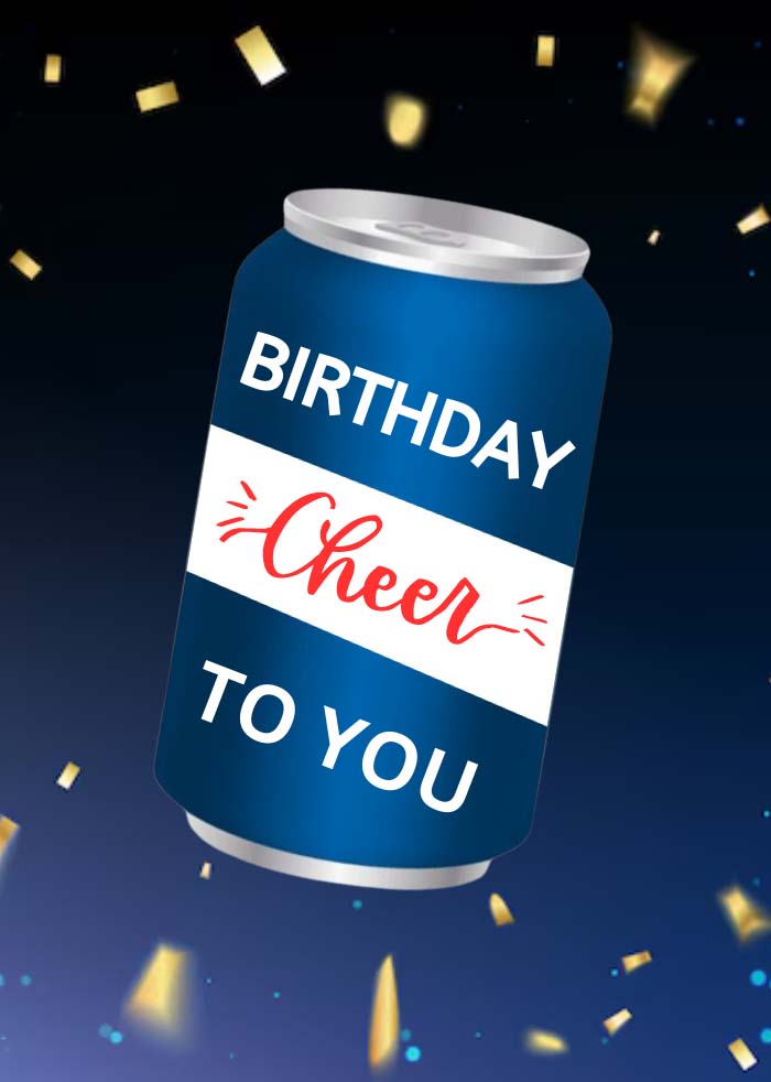 A brightly coloured design can drink, filled with bubbly goodness, and confetti raining down. Share Happy Birthday Cheers to you eCard showcasing another year of fun and fabulous times.