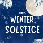Share magical Winter Solstice wishes with this moonlit digital card featuring frosty pine trees, snowflakes, and a glowing full moon.