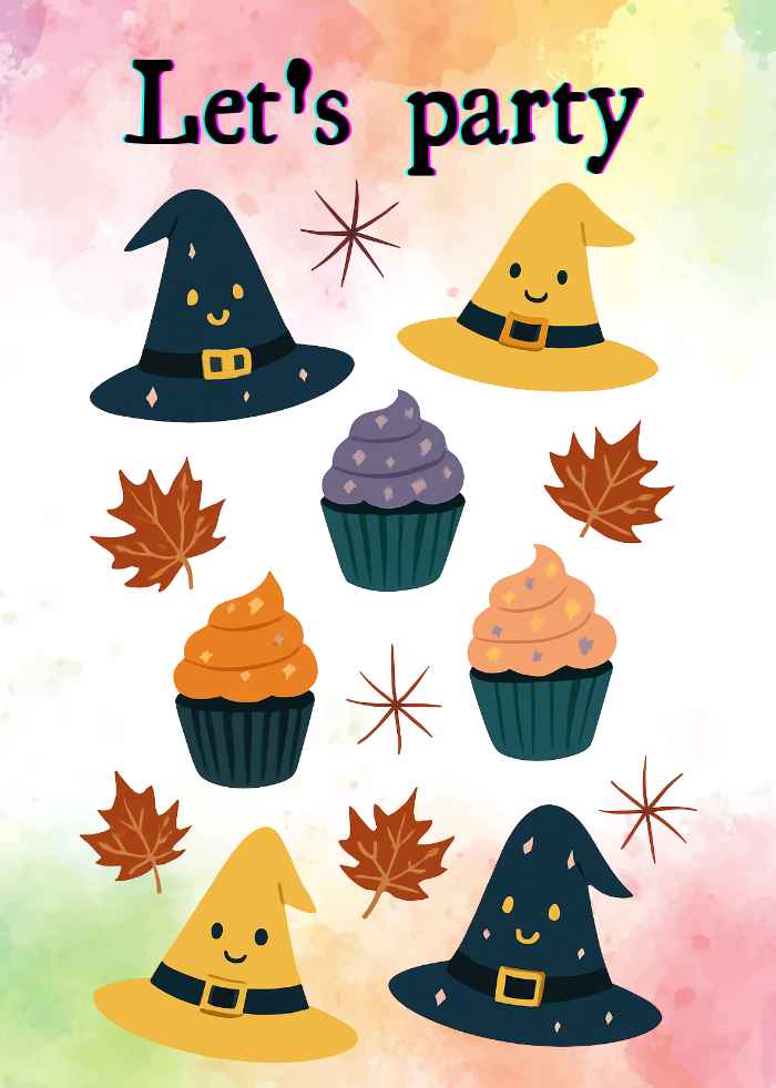 Add magic to their October birthday with this party eCard featuring witch hats, cupcakes, and autumn leaves.