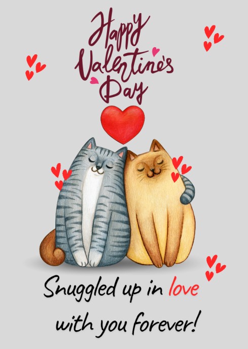 Snuggled Up Cats Valentine Digital Card for Couples